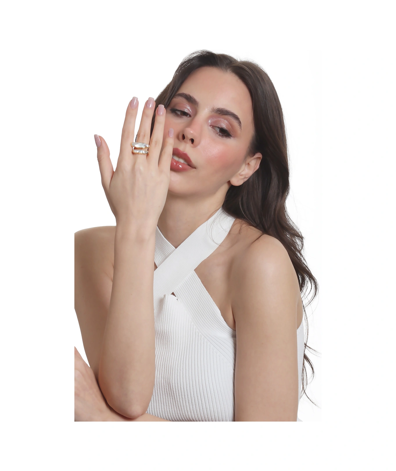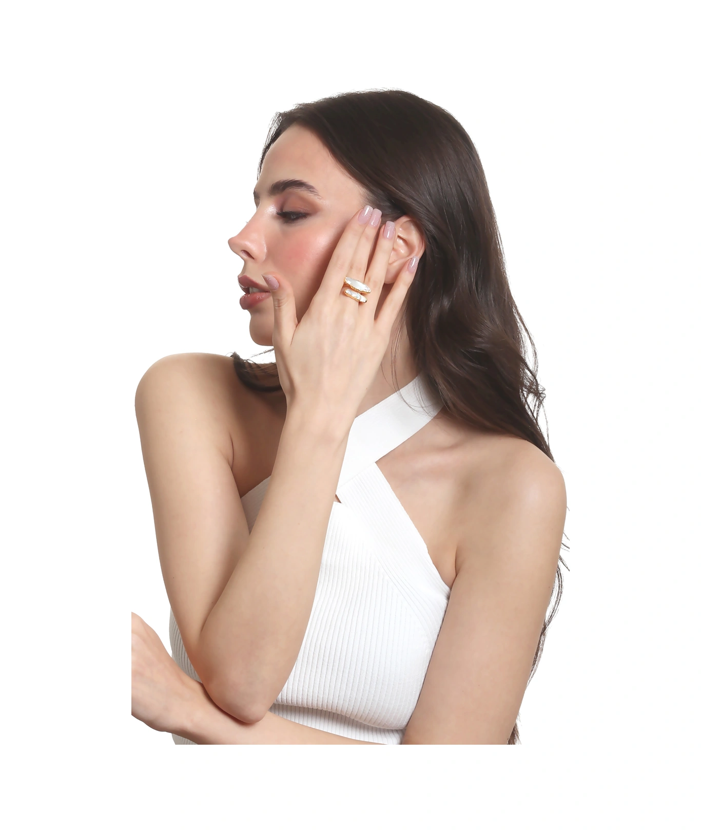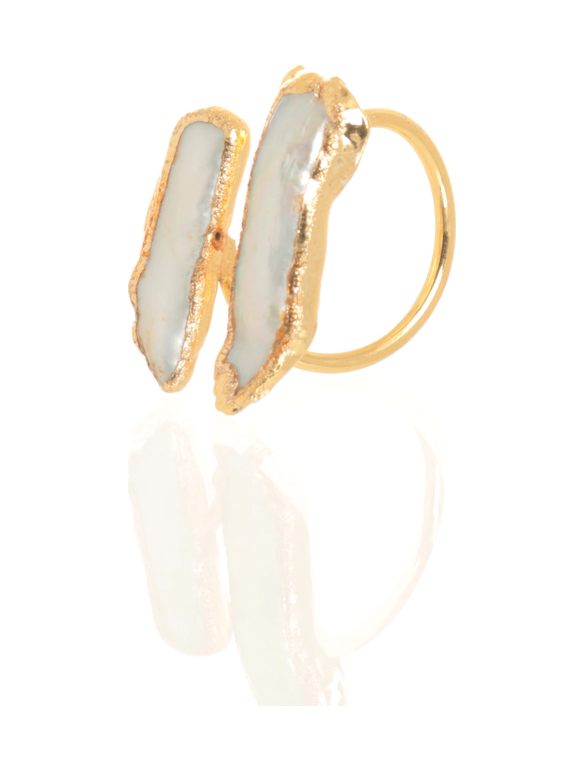 Labalaba Kadın İki Telli El Yapımı Tasarım İnci Yüzük Altın