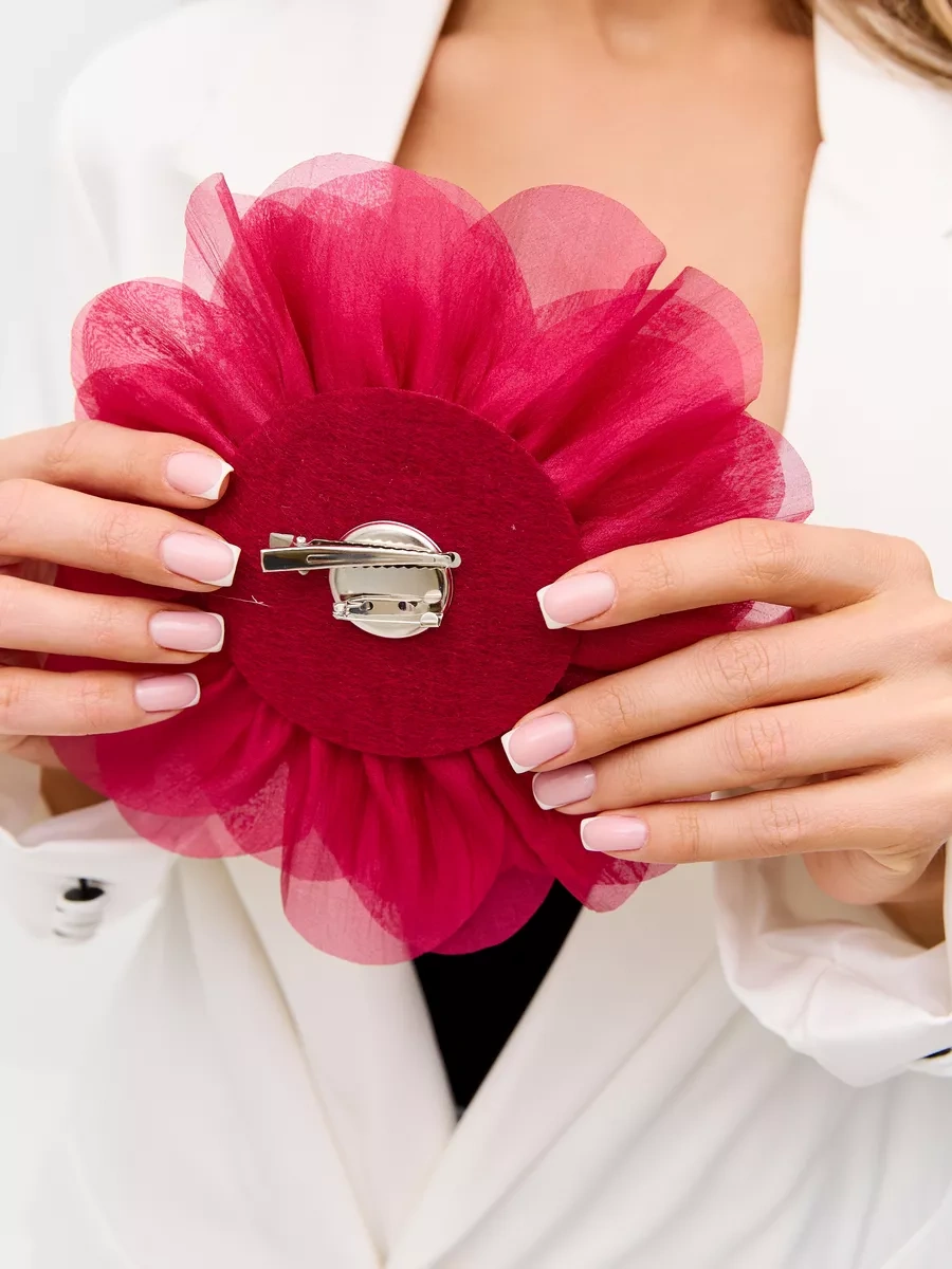 Labbıje Büyük Broş Kumaş Çiçek Fiyonk 225129736 Şarap Rengi