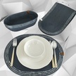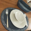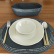 Lacivert 6 Kişilik 8 Parça Amerikan Servis, Hasır Supla Takımı, T Lacivert
