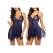 Lacivert Artı Boyutu Kadınlar İçin Yeni Sling Lingerie Derin V Dantel Babydoll Pijama Boudoir Kıyafetler