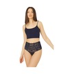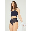 Lacivert Dantelli Lastik Detaylı Yüksek Bel Kadın Tanga Külot Lacivert