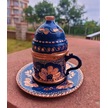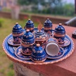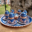 Lacivert Gül Çiçek Bakır Kahve Takımı