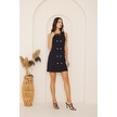 Lacivert Kolsuz Önü Düğmeli Tweed Elbise Dm1010