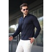 Lacivert Polo Yaka Fermuarlı Erkek Kazak E7427 Lacivert