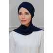 Lacivert Pratik Hazır Geçmeli Tesettür Bone Sandy Kumaş Taçlı Büz Lacivert