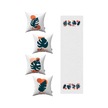 Lacivert Turuncu Modern Tarz Yaprak Desenli 4'lü Kırlent Kılıfı 1 Runner Seti 4kmbs115 Rs Lacivert