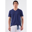 Lacivert V Yaka Pamuklu Düz Renk Slim Fit Erkek T-shirt Lacivert