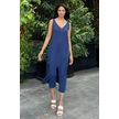 Lacivert V Yaka Uzun Salaş Elbise Lacivert