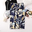 Lacivert Yaz Baskı Zarif Kalem Etek Kadın Yüksek Bel Diz Boyu Etek Kadın Lacivert