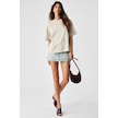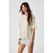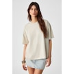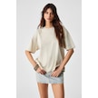 LAGERTHA Kadın %100 organik Pamuklu Kalın Dokulu Oversize Fit Yuvarlak Yakalı Taş Rengi T-Shirt