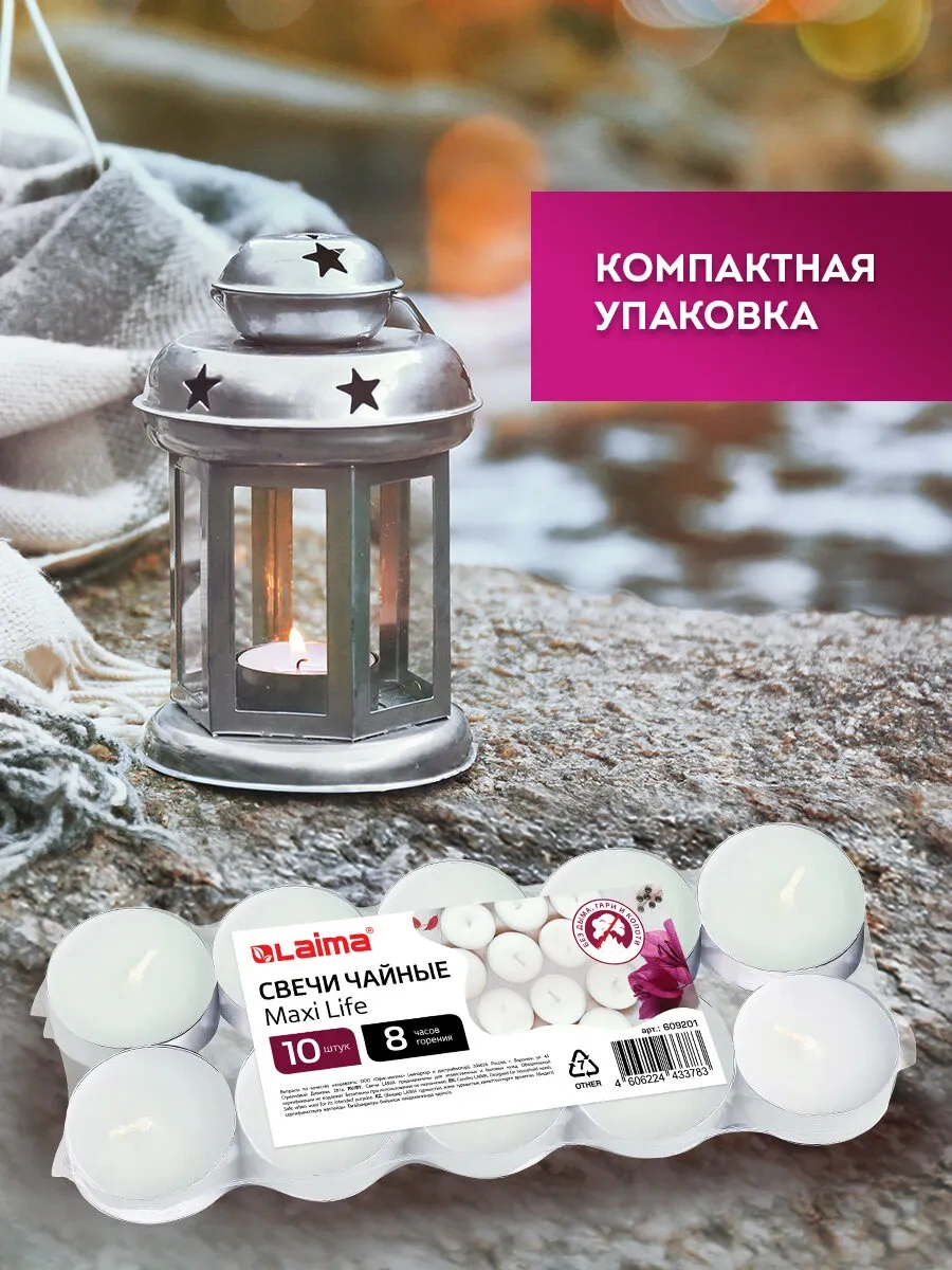 Laima Çay Mumları, 10'lu Hediye Seti, 8 Saate Kadar Yanma 253005791 Beyaz