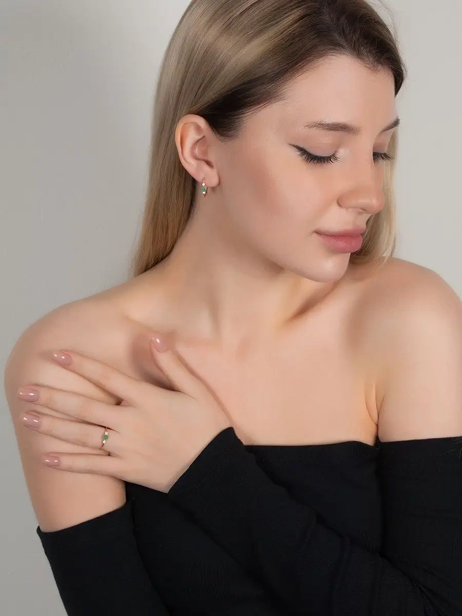 Lair Doğal Zümrütlü Gümüş Üzerine Altın Kaplama Yüzük 146726024 Yeşil