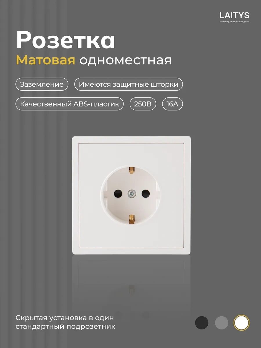 Laıtys Tekli Mat Beyaz Topraklamalı Priz 313898358