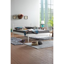 Odin Çift Kişilik Metal Karyola-beyaz Ahşap Latalı