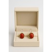 Lale Serisi El İşi Kırmızı Akik Taşlı Gümüş Kadın Küpe Gümüş