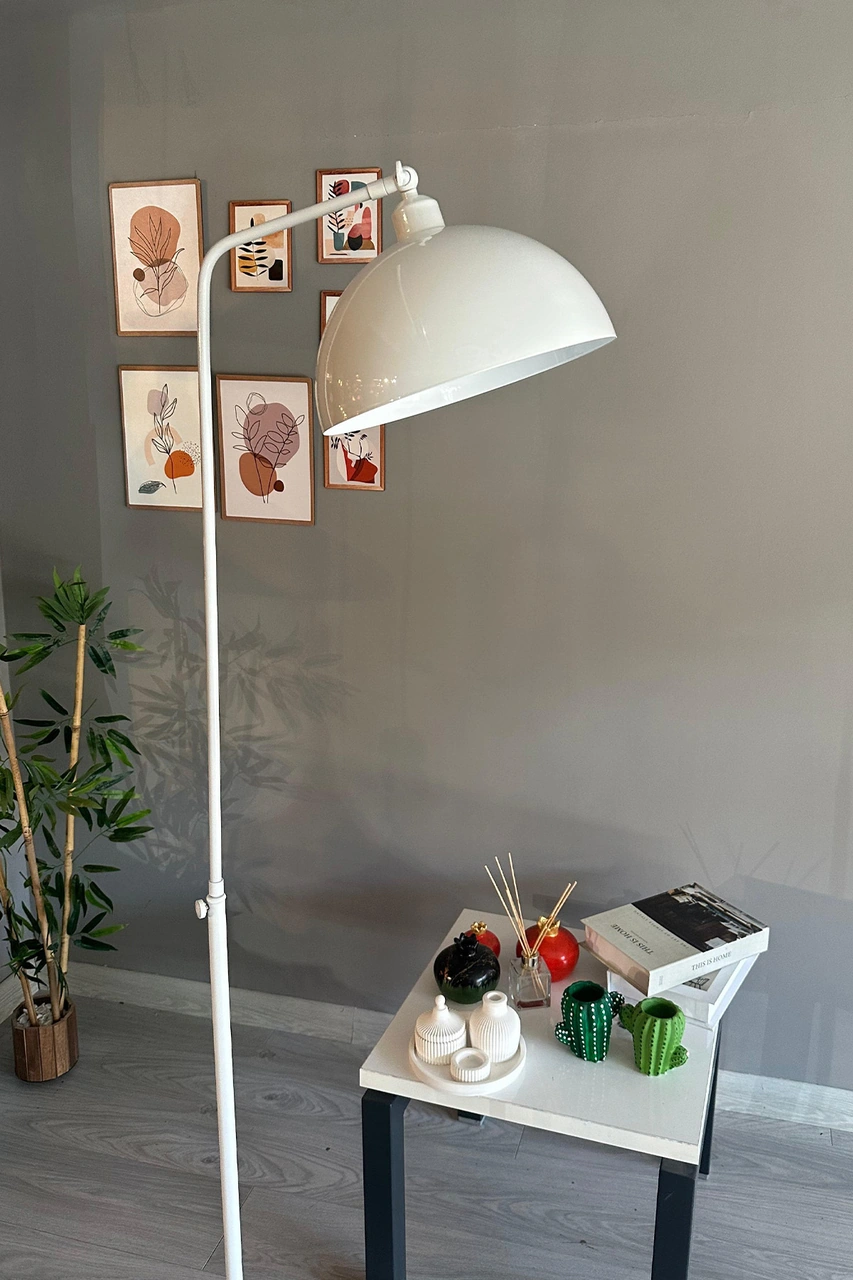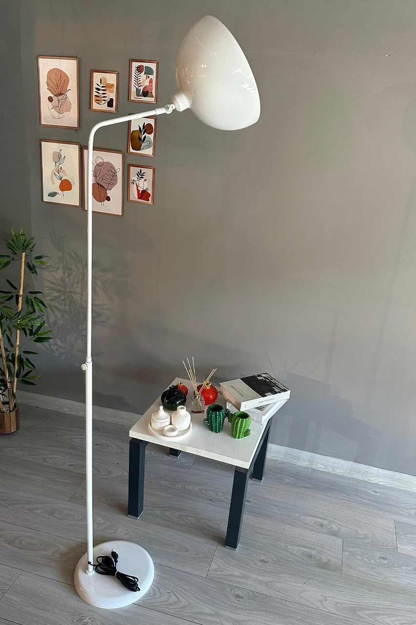 Lambader Hareketli Başlık Modern Dekoratif Metal Oturma Odası Çalışma Odası Zemin Lambası Beyaz