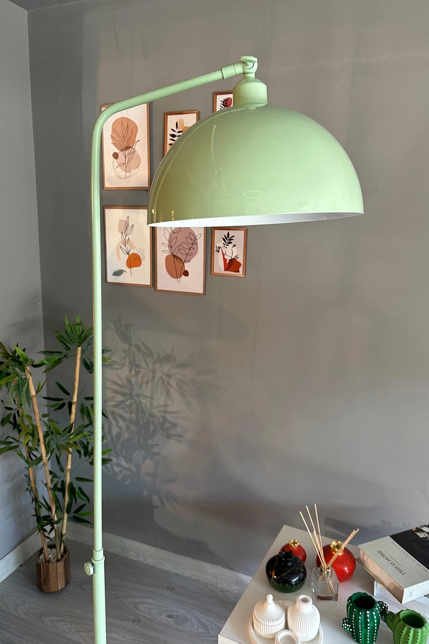 Lambader Hareketli Başlık Modern Dekoratif Metal Oturma Odası Çalışma Odası Zemin Lambası Su Yeşili