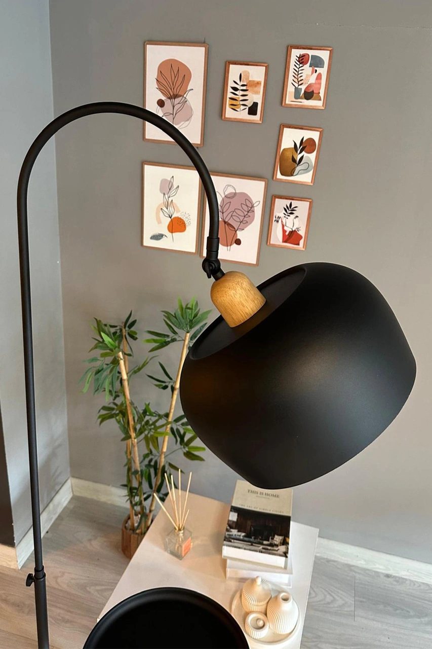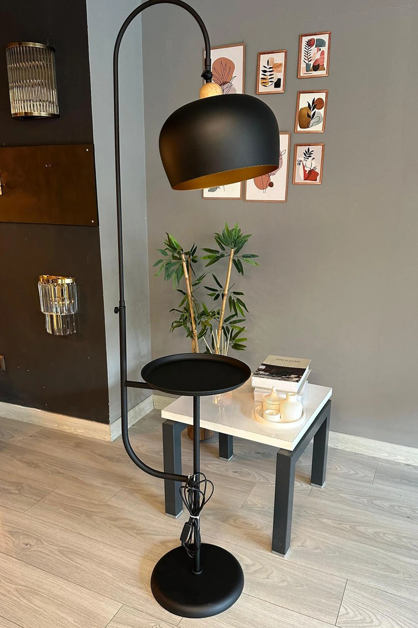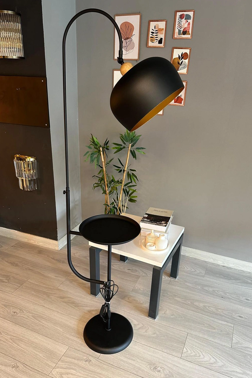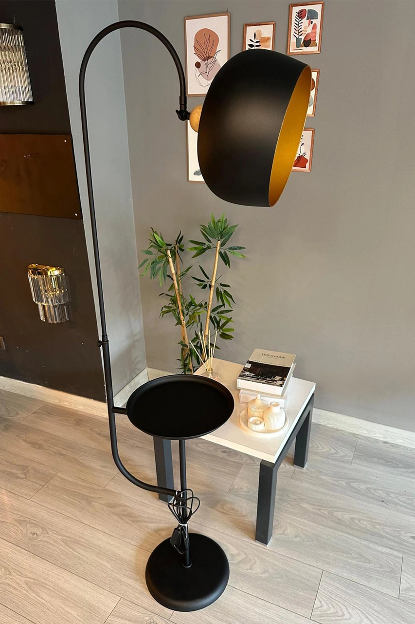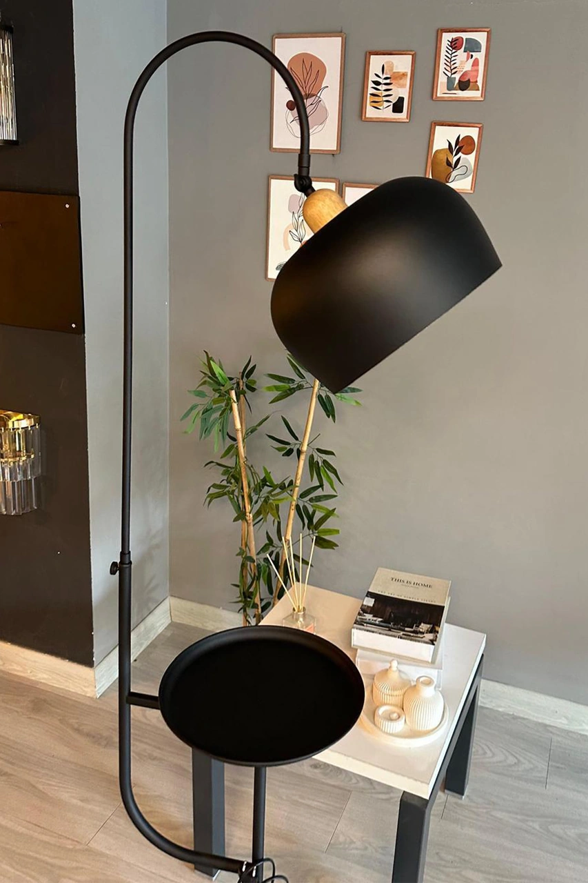 Lambader Siyah Hareketli Başlık Sehpalı Modern Dekoratif Metal Oturma Odası Çalışma Odası Zemin Siyah