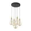 Lampaluce Goccia Tasarım Cam Avize 5'li Siyah - Sarı Bal - Siyah