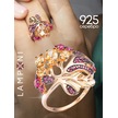 Lamponi 925 Ayar Gümüş Altın Kaplama Yüzük, Yakut Ve Sitrenli 57394229 Altın