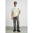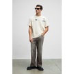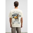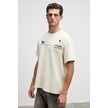 LANDI Erkek Önü Nakışlı Ve Baskılı Sırtı Baskılı %100 Organik Pamuk Bisiklet Yaka Oversize Fit Krem