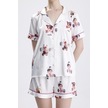 Laperissa Kadın Kısa Kol Şortlu Pijama Takımı Kız Bebek Desenli Yazlık Rahat Ev Giyim Beyaz