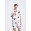 Leopar Ve Çiçek Desenli Pamuklu Penye Kumaş Pijama Takımı Ekru