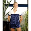 Laperissa Kadın Lacivert Beyaz Kısa Kollu Saten Şortlu Pijama Takımı Rahat Ve Şık 2 Li Set Lacivert