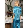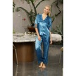 Laperissa Kadın Mavi Desenli Saten Düğmeli Pijama Takımı Dantel Kol Detaylı Şık Ve Rahat 2 Li Set Mavi