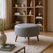 Large Büyük Yuvarlak Modern Puf - 60 Cm - Deri Kumaş - Gri