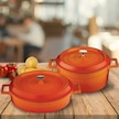 Lava 24Cm Yuvarlak 24Cm Sığ 2Li Demir Döküm Tencere Seti Turuncu