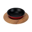Lava Döküm Yuvarlak Çorba Kasesi Ve Kayın Servis Ahşabı. Çap Ø 14cm. Bordo
