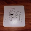 Lavanta Tasarım Bart Simpson Ve Hommer Ahşap Bardak Altlığı Beyaz