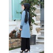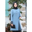 Lazer Kesim Detaylı Büyük Beden Tesettür Takım Mavi