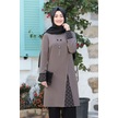 Tesettür İkili Takım Uzun Tunik Bol Paça Pantolon 4006-kahve Kahverengi