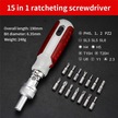 Leasetake Çok Açı Çift Yönlü Cırcırlı Tornavida Seti 15'i 1 Arada Torx Manyetik Tornavida Ucu Hassas Tornavidalar B