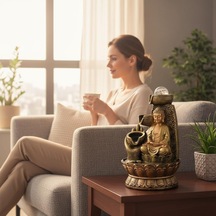 Led Işıklı Buddha Masaüstü Şelale Ve Dekoratif Su Şelalesi