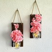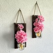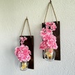 Led Işıklı, Pembe Bahardalı Çiçekli Duvar Dekoru Ceviz İkili Set Ceviz