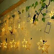 Led Perde Fişli Dekoratif Yıldızlı Saçaklı 12 Adet Yıldız