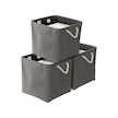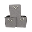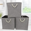 Leezsing Büyük Katlanabilir Kumaş Keten Saklama Kutuları 3'lü Set Raflar, Dolaplar İçin Keten Halat Saplı Katlanabilir Sağlam Dikdörtgen Sepetler Gri Renk