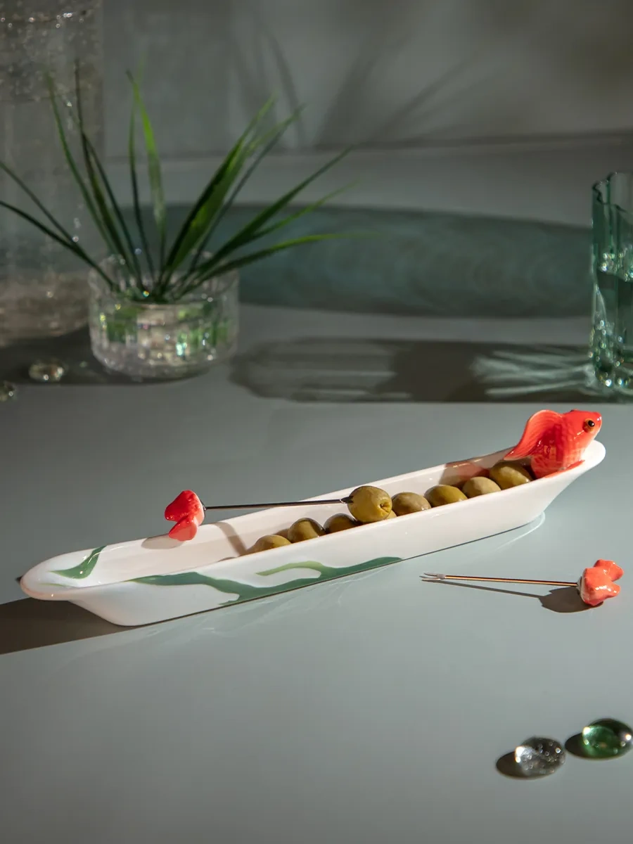 Lefard 30 Cm Altın Balık Servis Tabağı Çatallı 149185631 Beyaz