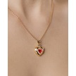 Lekka Design Kadın Kararmaz Çelik Takı Kırmızı Zirkon Taşlı Kalp Aşk Kolye Altın