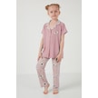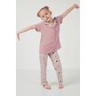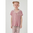 Lela Baskılı Beli Lastikli Gömlek Yaka Kısa Kollu Kız Çocuk Pijama Takımı 6576001 Pembe