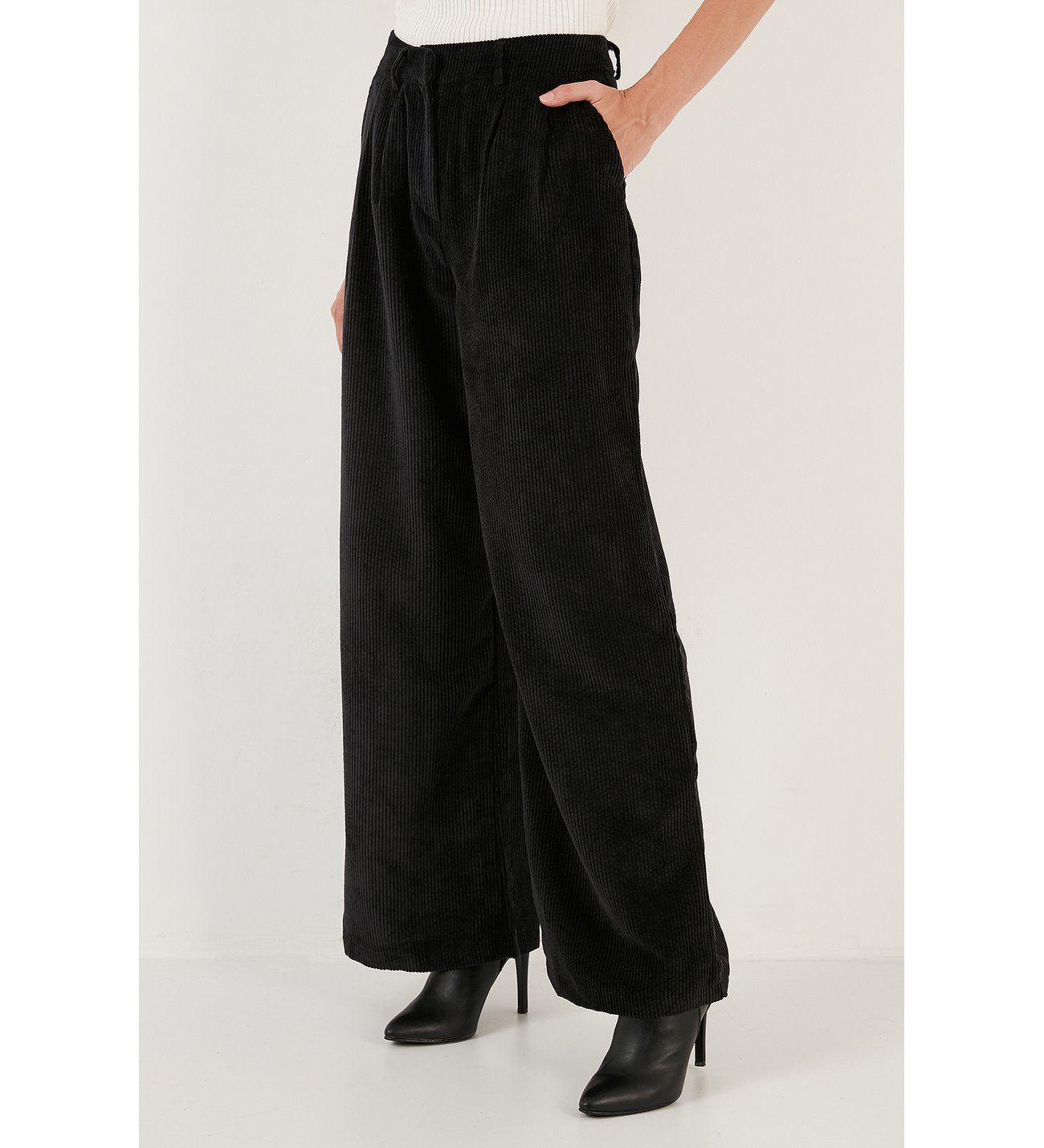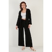 Lela Belden Bağlamalı Rahat Kesim Krinkıl Kuımaş Bayan Pantolon 5862061 Siyah