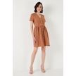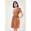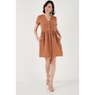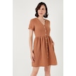 Lela Cepli Önü Düğmeli Kısa Kollu V Yaka Regular Fit Bayan Elbise 611El222 Kahve