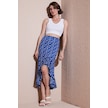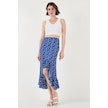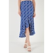 Lela Çiçek Desenli Regular Fit Volanlı Yüksek Bel Midi Boy Yırtmaçlı Bayan Etek 5869012 Saks
