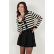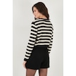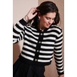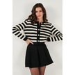 Lela Çizgili Oversize Fit Bisiklet Yaka Düğmeli Crop Triko Bayan Hırka 4615567 Siyah