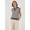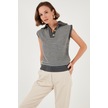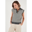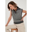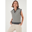 Lela Çizgili V Yaka Triko Bayan Süveter 4616171 Koyu Gri-Krem