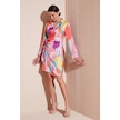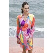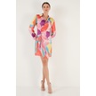 Lela Desenli Kruvaze Yaka Bağlamalı Saten Bayan Elbise 611El295 Fuşya