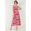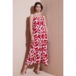 Lela Desenli Midi Boy Oversize Fit Bağlamalı Ip Askılı Bisiklet Yaka Bayan Elbise 5869009 Bordo
